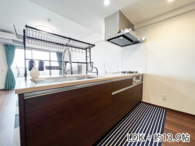 | 設備 | 都市ガス / システムキッチン / 対面式キッチン / カウンターキッチン / 洗髪洗面化粧台 / 収納スペース / 収納 / オートロック / 防犯カメラ / モニター付きインターホン / 宅配ボックス / エレベーター / 室内洗濯機置き場 |