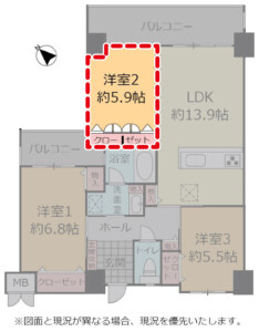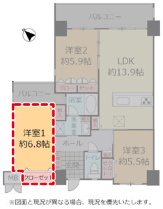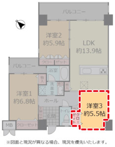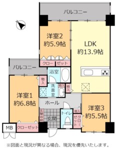 | 間取り | 3LDK(洋 5.5・5.9・6.8 / LDK 13.9) |