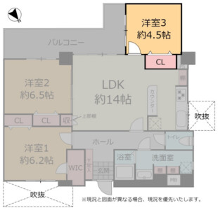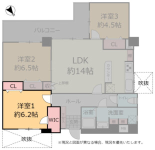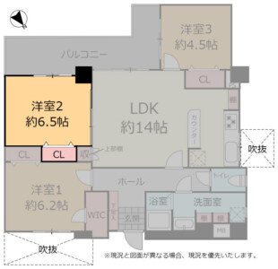 | 間取り | 3LDK(洋 6.5・6.2・4.5 / LDK 14) |