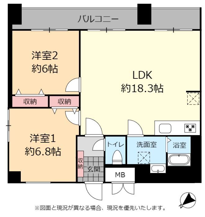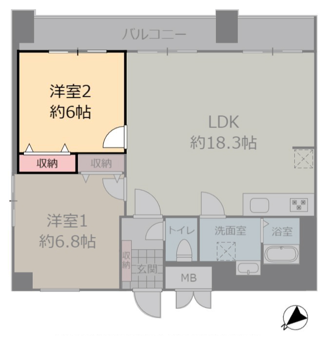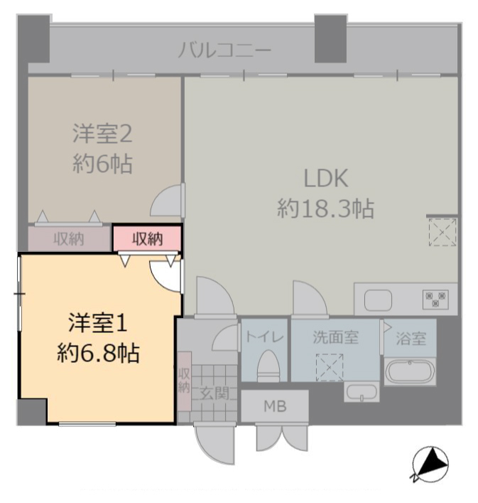 | 間取り | 2LDK(洋 6.8・6 / LDK 18.3) |