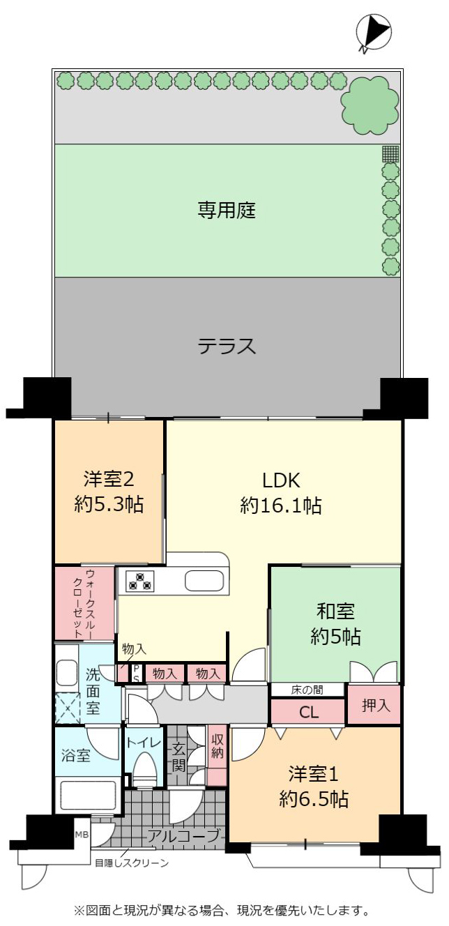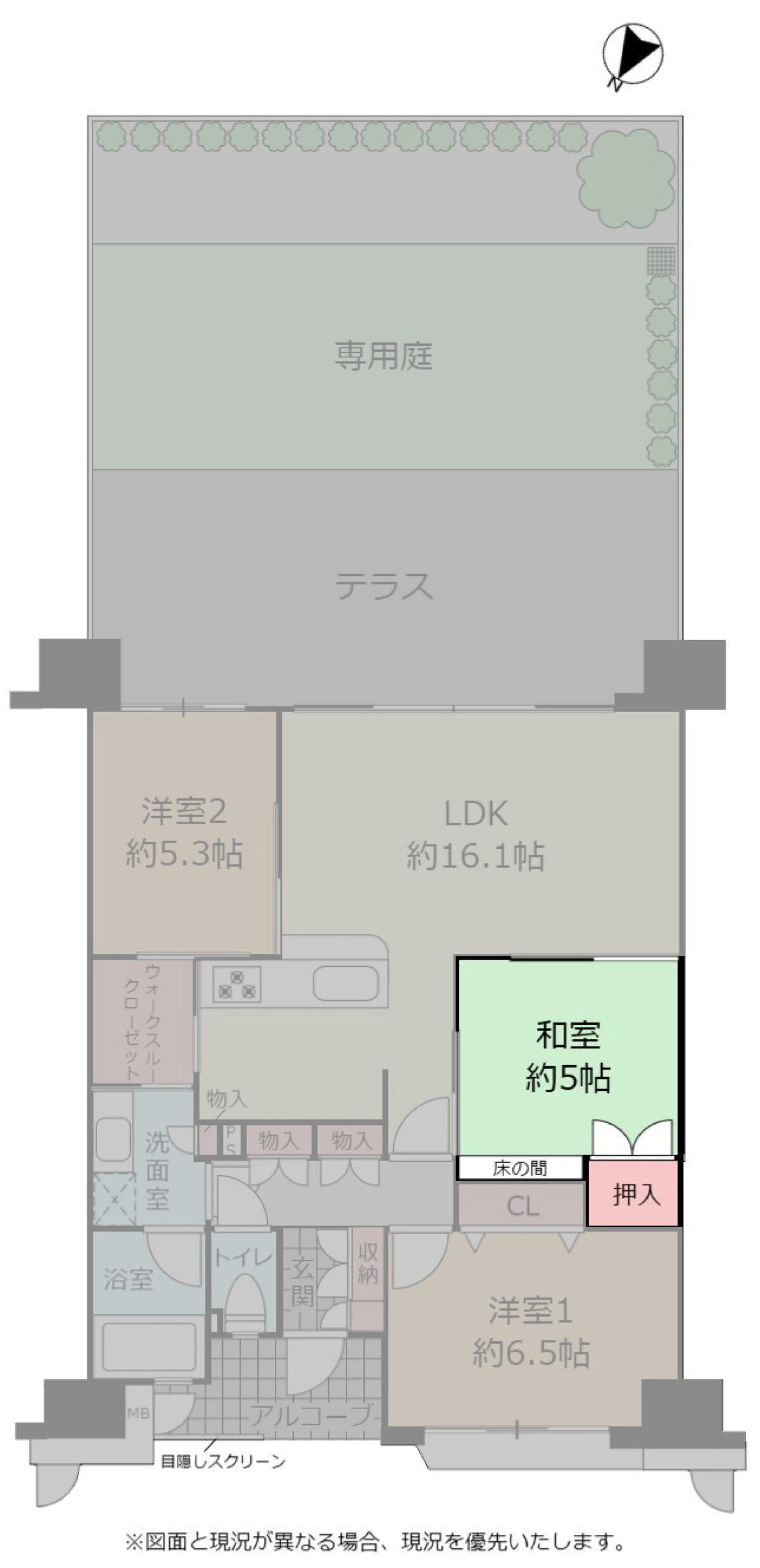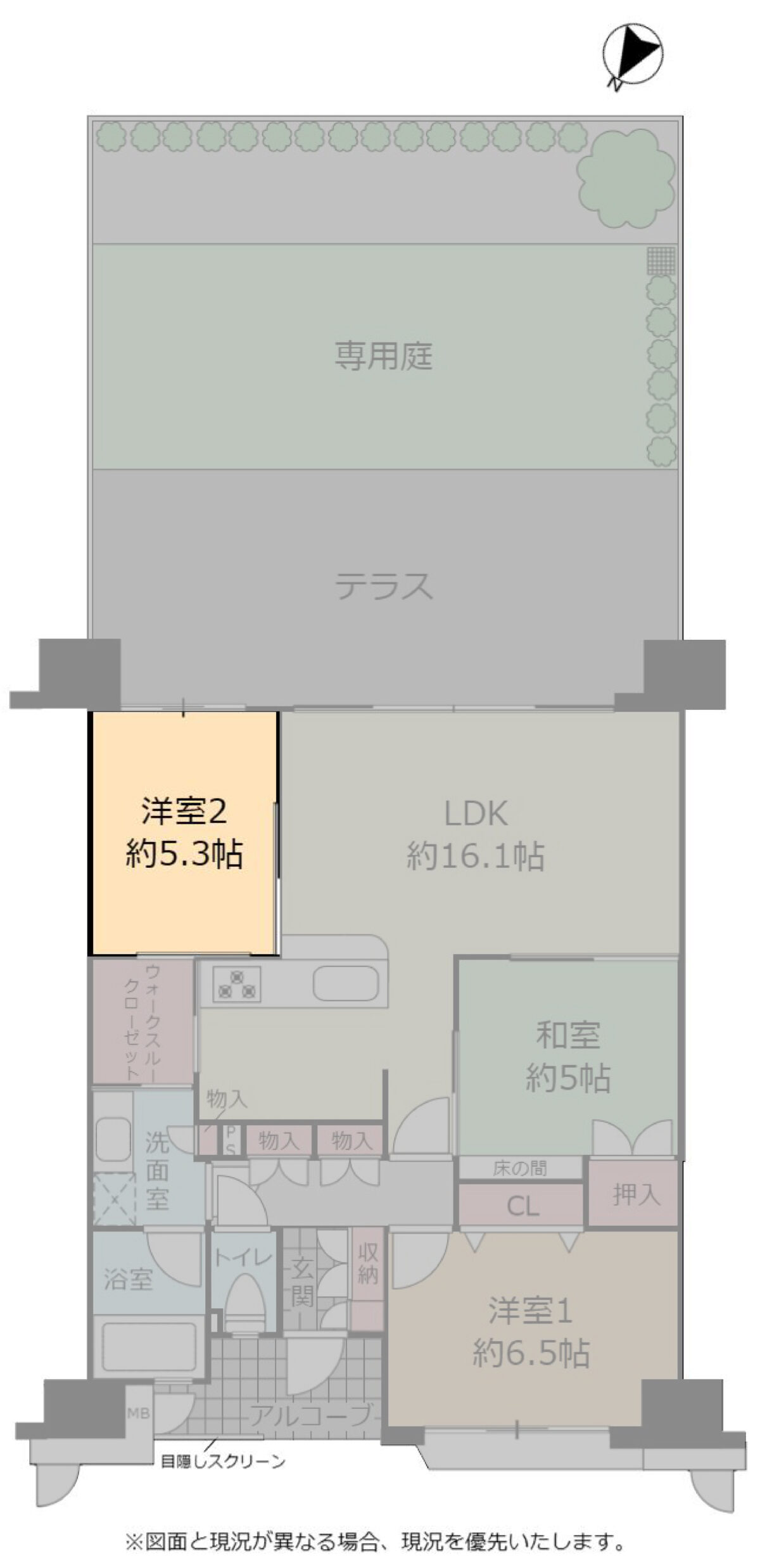 | 間取り | 3LDK(和 5 / 洋 6.5・5.3 / LDK 16.1) |