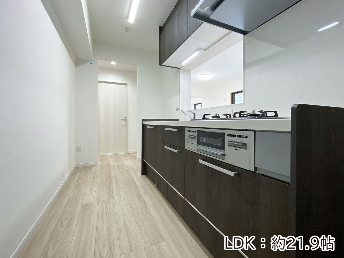 | 設備 | システムキッチン / 対面式キッチン / プロパンガス / カウンターキッチン / 独立洗面台 / 浴室乾燥機 / 温水洗浄便座 / エアコン1台 / 収納 / オートロック / モニター付きインターホン / エレベーター / 室内洗濯機置き場 |