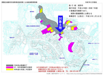 | 備考 | 仮換地済、今年度内(R8年度)使用収益予定の土地となります。 【事業概要】 ■浦添南第二土地区画整理事業 ・施行者:浦添市 ・施行年度:平成8年度~令和12年度 ※事業認可期間であり、実際の整備期間とは異なる ・事業認可(公告日):平成9年1月10日 (出典:浦添市役所ホームページ https://www.city.urasoe.lg.jp/doc/609e72733d59ae2434bfda58/) 【地区の細区分】 沿道低層住宅地区(エリア2)、沿道中高層地区(エリア4) 【地区の用途】 ■第2種低層住居専用地域(エリア2) ・建ぺい率:50% ・容積率:150% ・高さ制限:12.0m以下 ■第1種中高層住居専用地域(エリア4) ・建ぺい率:60% ・容積率:150% 【建築物等の用途制限】 ■建築可能な用途(例) ・住宅、共同住宅 ・兼用住宅(一定規模以下) ・老人ホーム、身体障害者福祉ホーム ・老人福祉センター、児童厚生施設 ・保育所、診療所 ・幼稚園、小学校、中学校、高等学校 ・図書館 等 ■建築不可な用途 ・神社、寺院、教会等 ・公衆浴場 ・畜舎 [備考] ■住所:浦添市字沢岻長田原1110番4、1110番7(従前地) ■地目:宅地(1110番4)、雑種地(1110番7) ■用途地域:第二種低層住居専用地域、第一種中高層住居専用地域 ■固定資産税(R7年度 税相当額):133,096円 ■中学校区:神森中学校、浦添中学校(建物の附番による。「字沢岻→神森中学校」「字経塚→浦添中学校」) ※その他詳細に関してはお気軽にお問合せくださいませ。 ーーーーーーーーーーーーーーーーーーーーーーー ■周辺情報 ・セブンイレブン浦添沢岻店(41m・徒歩約1分) ・エルキッズうらそえ保育園(160m・徒歩約2分) ・ローソン 浦添大平店(200m・徒歩約3分) ・浦添市役所(950m・車で約3分) ・サンエー経塚シティ(1.1km・車で約3分) ・大平りうぼう(1.1km・車で約3分) ・ダイレックス 浦添店(1.1km・車で約3分) ・昭和薬科大学附属高等学校・中学校(1.4km・車で約4分) |