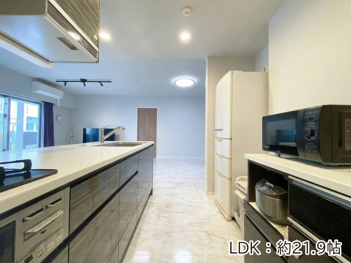 | 設備 | システムキッチン / 対面式キッチン / 浄水器 / プロパンガス / カウンターキッチン / 浴室乾燥機 / 洗髪洗面化粧台 / 温水洗浄便座 / ガス衣類乾燥機 / 独立洗面台 / ウォークインクローゼット / 収納スペース / 収納 / BS / CS / オートロック / 防犯カメラ / 24時間セキュリティ / モニター付きインターホン / 宅配ボックス / エレベーター / 室内洗濯機置き場 |