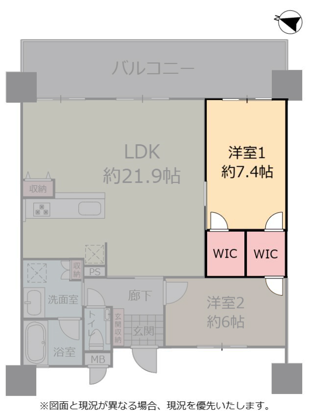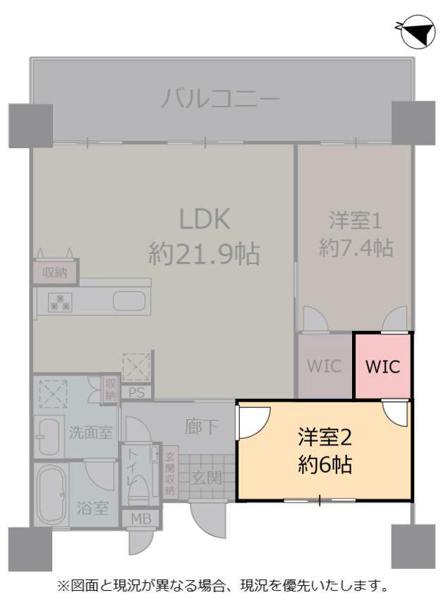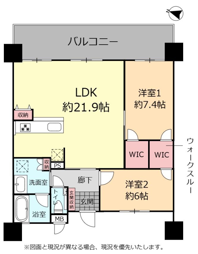 | 間取り | 2LDK(洋 7.4・6 / LDK 21.9) |