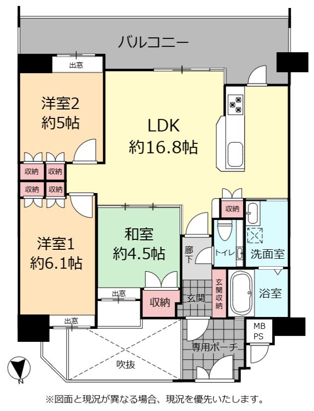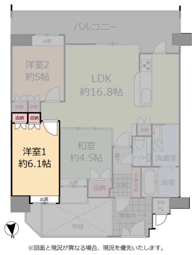 間取り3LDK(和 4.5 / 洋 6.1・5 / LDK 16.8)