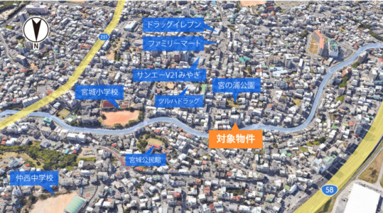 ●宮城小学校まで徒歩約5分、公園まで徒歩約2分と子育て世帯に嬉しい住環境