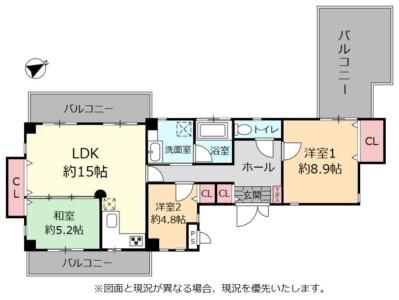 間取り3LDK(和 5.2 / 洋 8.9・4.8 / LDK 15)